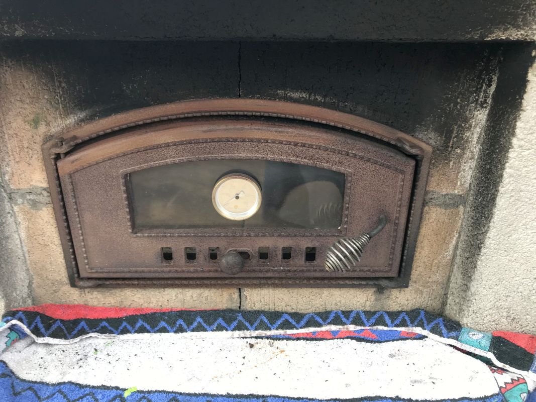 nachdem beim ersten einheizen irgendwas unterm Dach rausgeraucht hat, wird das Dach wieder aufgerissen und ein 2. Mal eingeheizt (ca. bis 350°, Stein 140°)